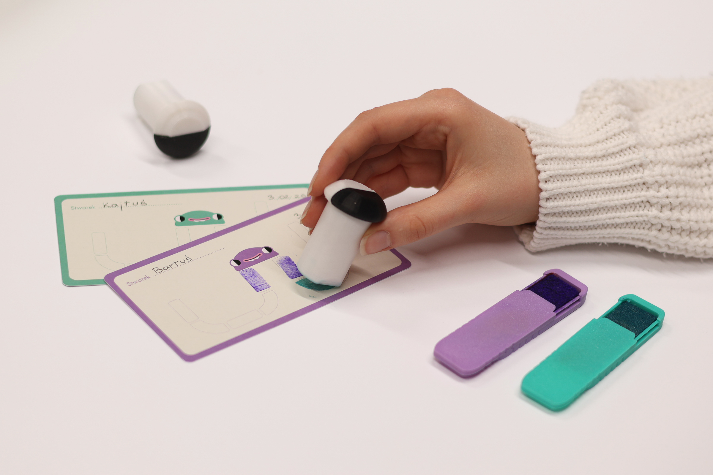 Zaangażowanie dziecka nagradzane jest pieczątkami na specjalnej karcie postępu — widoczne sukcesy dla dziecka i rodzica.