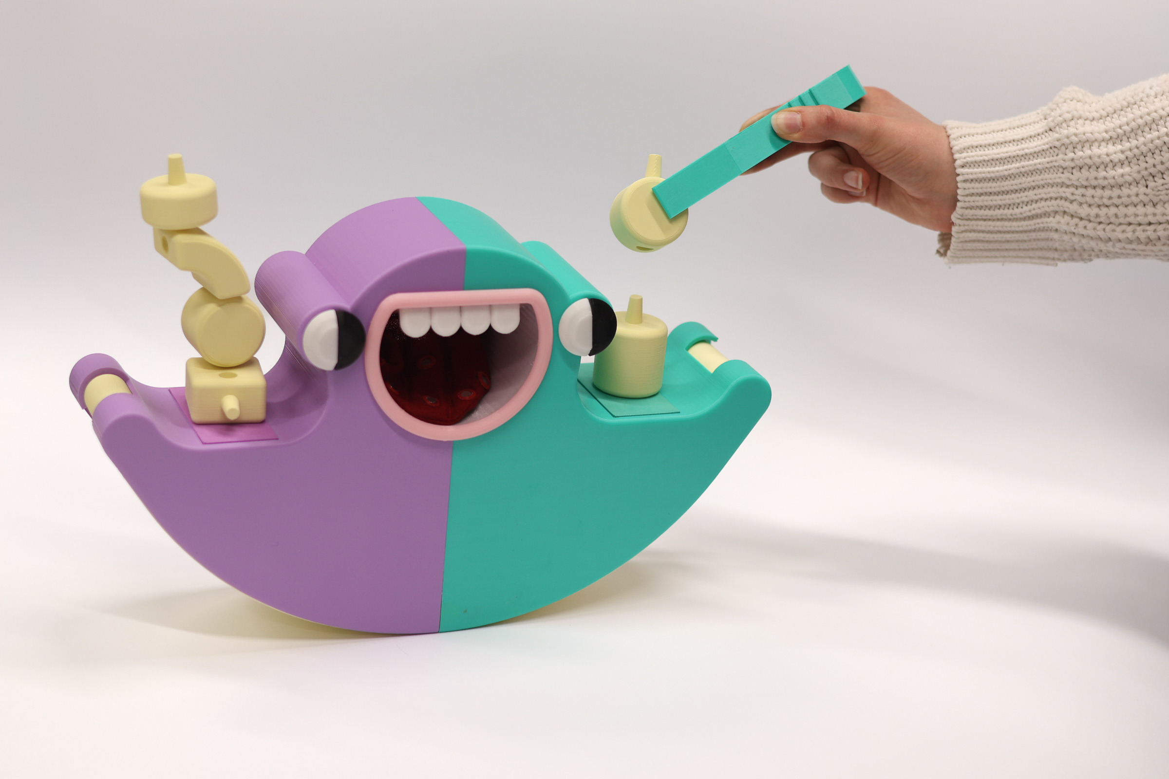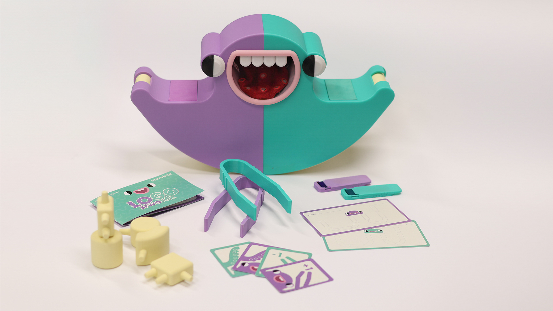 Dzięki magnetycznemu językowi-pacynce dziecko może dokładnie obejrzeć układ artykulacyjny w 3D, a mechanika gry z budowaniem wieży motywuje do kolejnych powtórzeń.